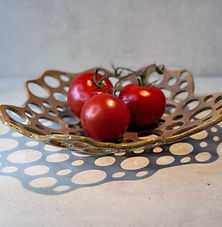 Opengewerkte schaal met speels gatenpatroon